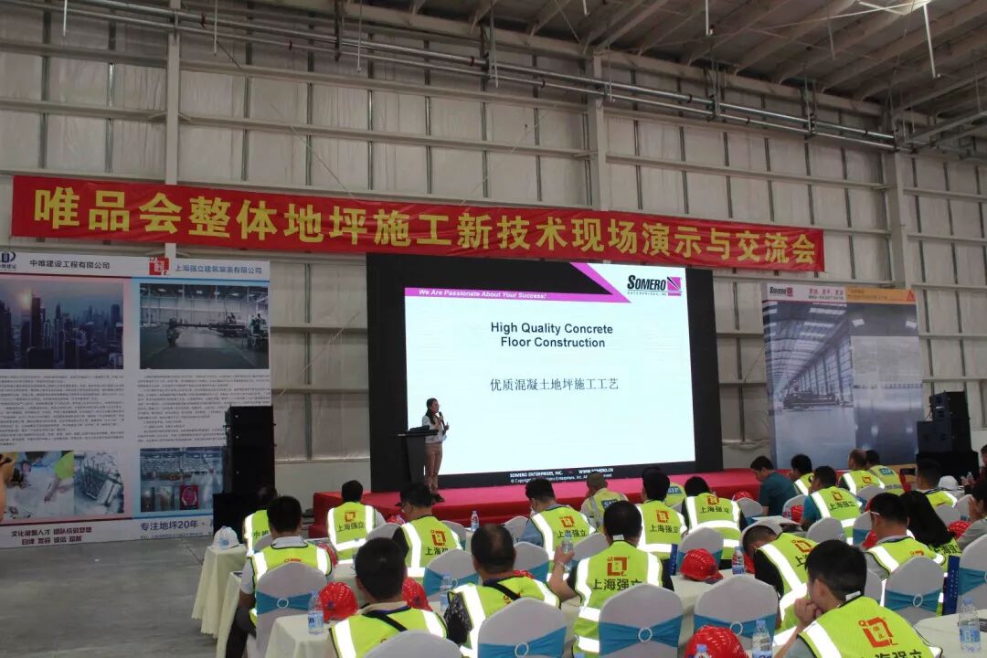 6月1日、2日在项目总承包中唯建设的大力支持下,朔马珞联合上海强立、西卡中国一起为广大地坪业界同仁奉上了一场精彩纷呈的“唯品会整体地坪施工新技术现场演示与技术交流会”。
